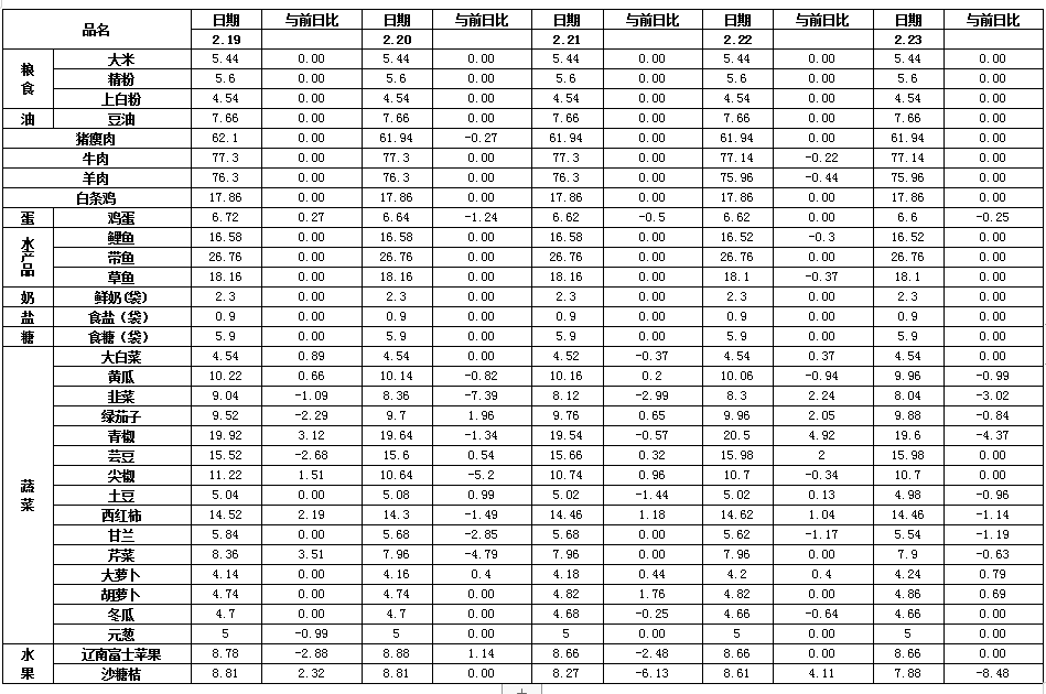 沈阳市重要生活必需品市场监测情况专报(2月23日)